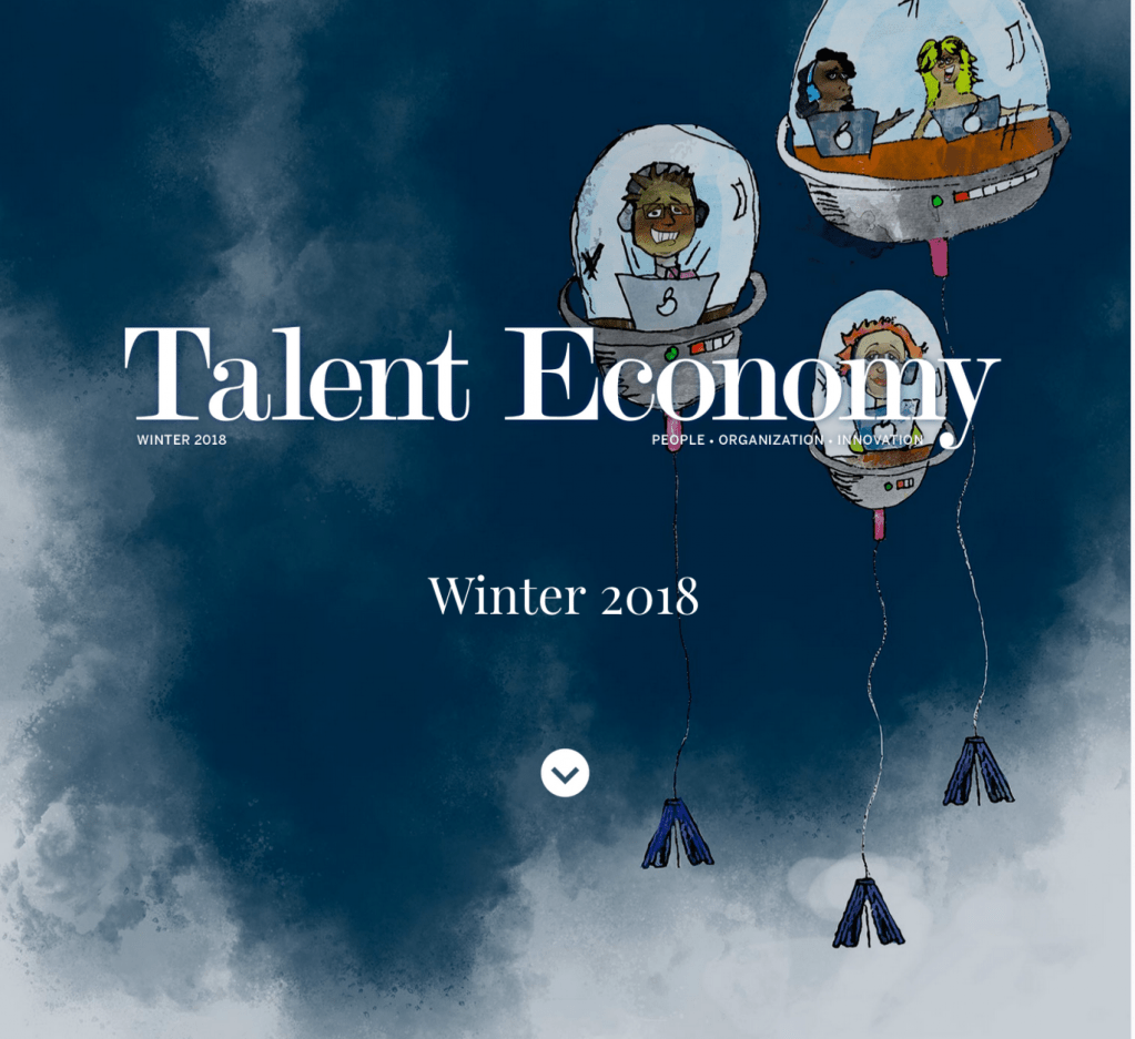 Winter 2018 Talent Economy magazine cover. Hand illustrated and digitally painted.Hand illustrations for table of contents of winter 2018 issue of Talent Economy magazine.Hand illustrated element for feature article in winter 2018 issue of Talent Economy magazine.Hand illustrated element for feature article in winter 2018 issue of Talent Economy magazine.